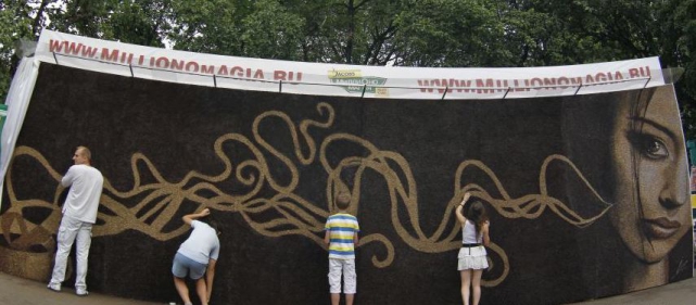 A legnagyobb kávéból készült festmény Moszkva egyik parkjában van kiállitva , pontosabban a Gorki parkban .