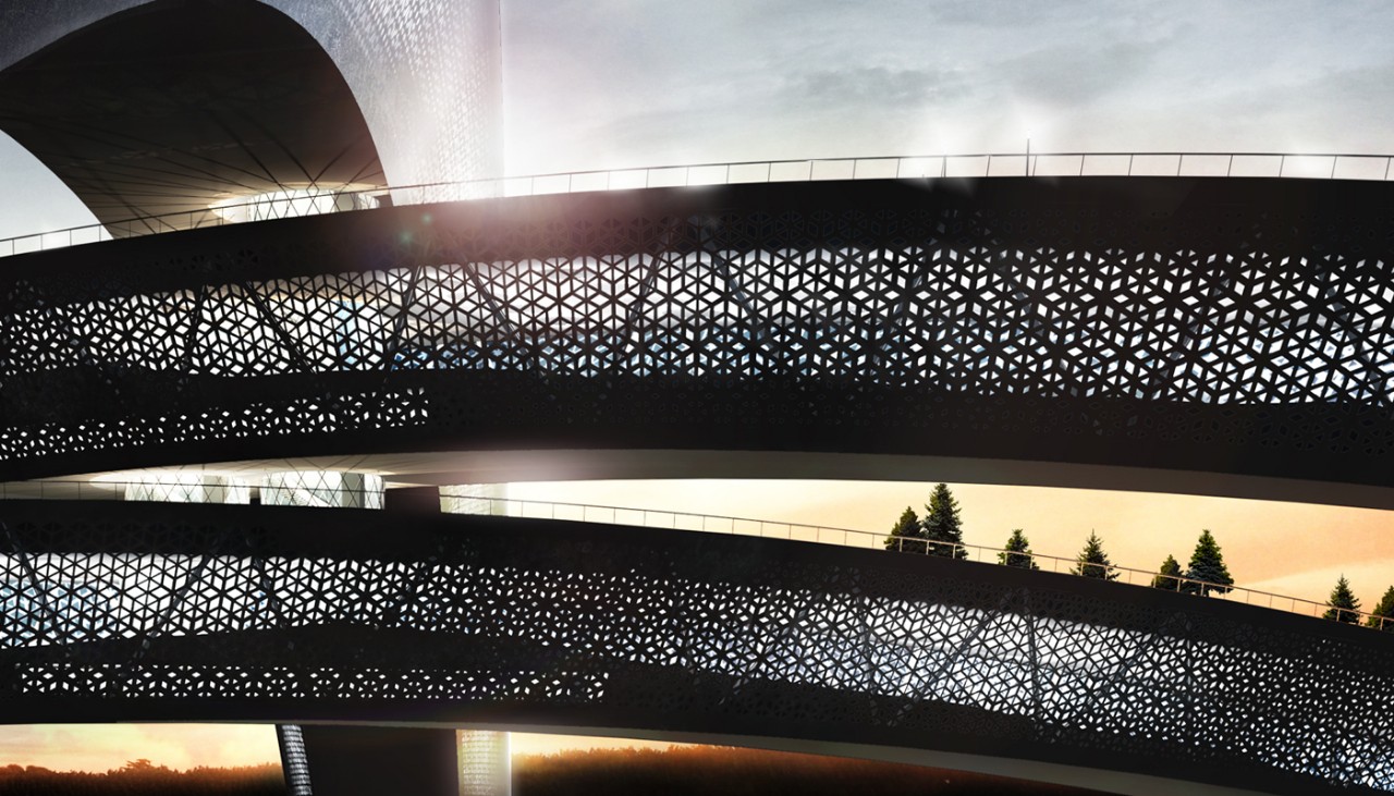 - A beltéri lesiklások közben is lehet majd a kilátásban gyönyörködni, hiszen a homlokzatot perforált és lyukacsos szerkezetűre tervezik, és az egésznek különleges hangulatot fog kölcsönözni a Skidome elhelyezkedése, ugyanis a boltívek csápjai a helyi Gudenå folyó fölé nyúlnak majd.